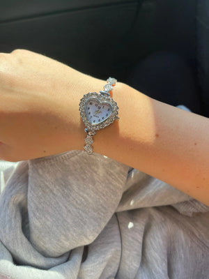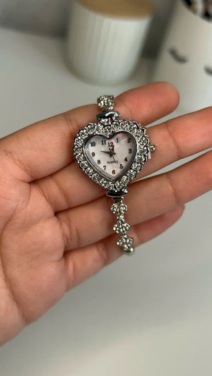 This watch's unique heart-shaped design offers a sophisticated look without being bulky. Perfect for those who seek elegance in simplicity. Its diamond-studded face adds a touch of luxury, making it an ideal choice for daily wear or special occasions.