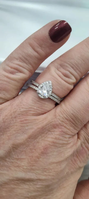 Say goodbye to endless searching with this stunning zircon ring set, designed to fit beautifully and make you shine on your big day.